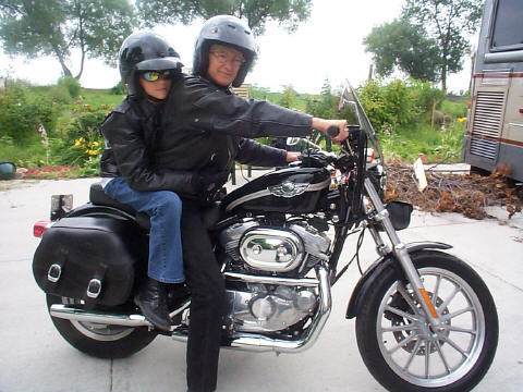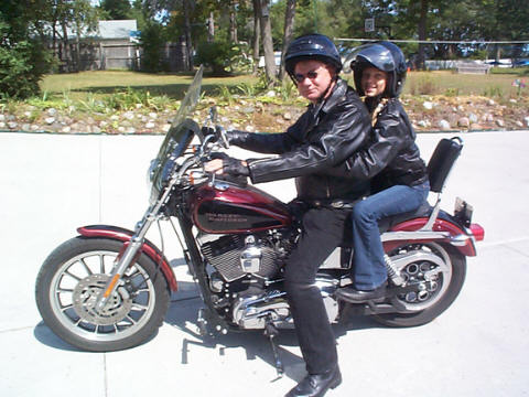 The first photo is Luann on her Harley Davidson Sportster 883 XLH, with Kelsey Armstong on the back. The second photo is Jims Dyna Glide Low Rider FXDL with Kendra Bucher on the back.